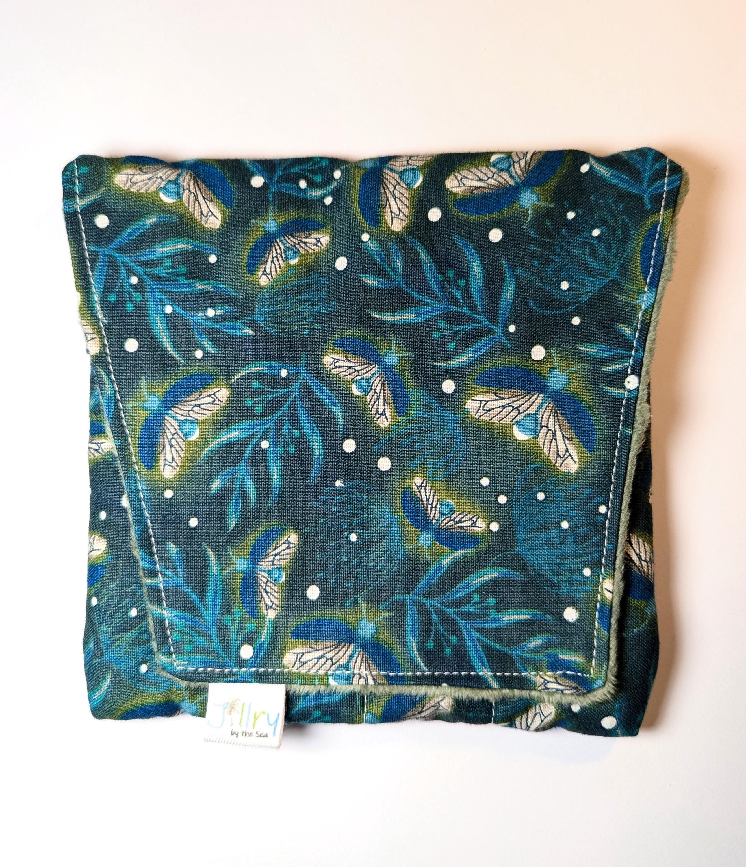 A handmade fabric fountain pen pouch that will hold all your mini pens and your notebook, too! Fun fabrics! White dots on fabric glow in the dark! Makes great gifts! This original design holds eight pens in pockets made of soft minky fabric that will protect them from bumping into each other and keep them from being scratched. The pocket is long enough to hold big pens and it even has a center pocket where you can stash a small notebook and ink refills!