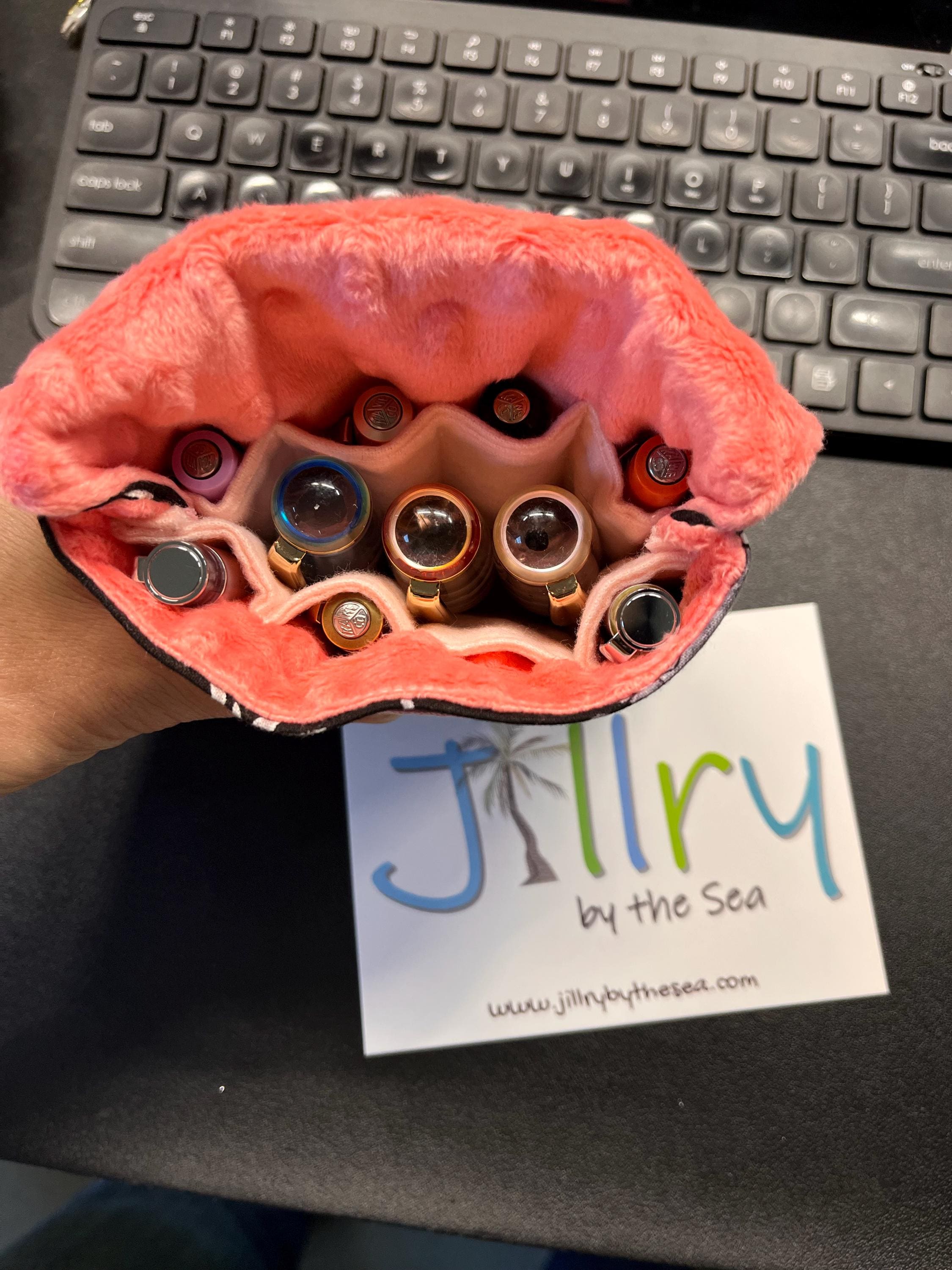 A handmade fabric fountain pen pouch that will hold all your mini pens and your notebook, too! Fun fabrics! Makes great gifts! This original design holds eight pens in pockets made of soft minky fabric that will protect them from bumping into each other and keep them from being scratched. The pocket is long enough to hold big pens and it even has a center pocket where you can stash a small notebook and ink refills!
