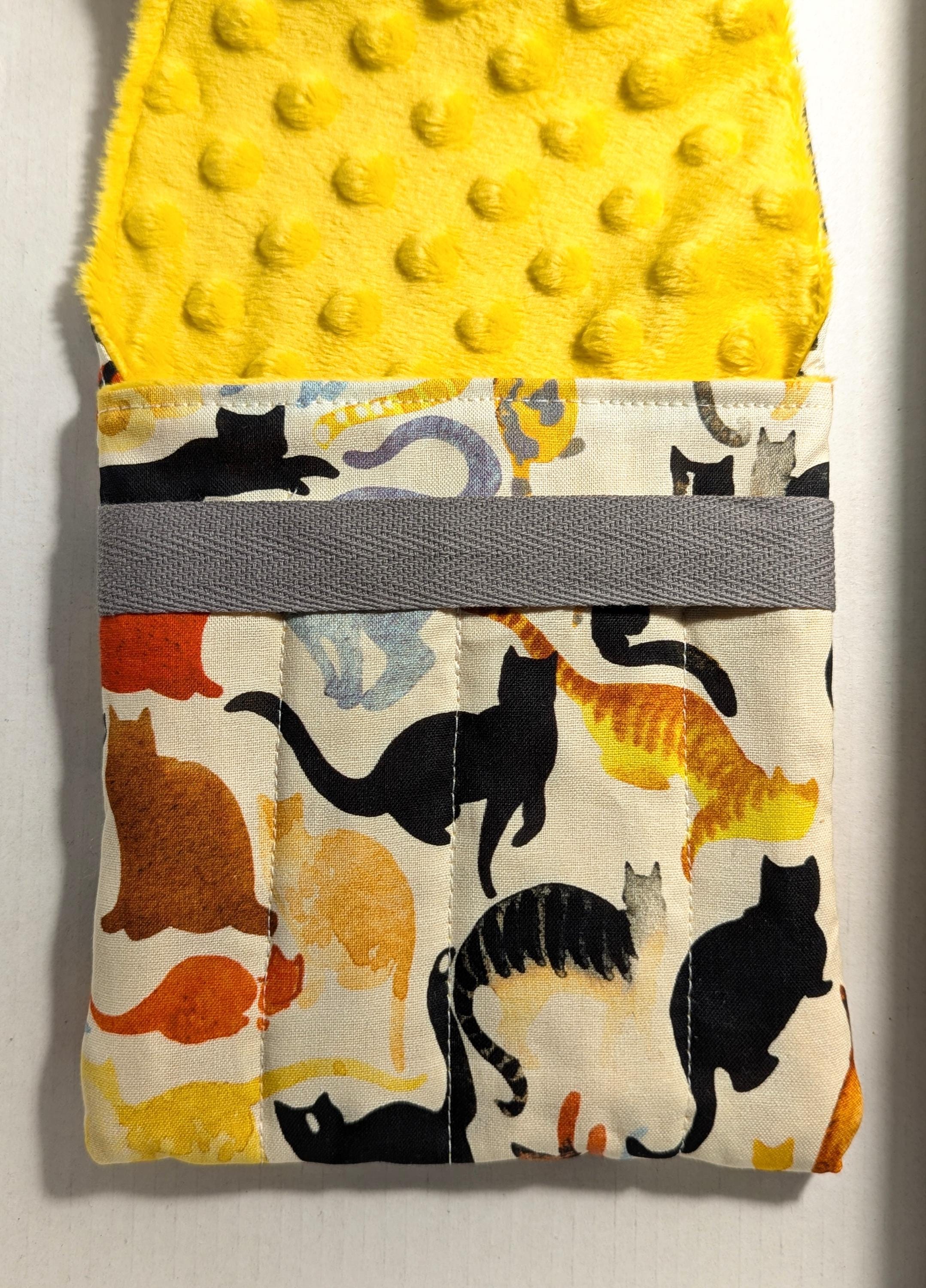 A handmade fabric fountain pen pouch that will hold all your pens and your notebook, too! Fun fabrics! Makes great gifts! This original design holds eight pens in pockets made of soft minky fabric that will protect them from bumping into each other and keep them from being scratched. The pocket even has a center pocket where you can stash a small notebook and your phone!