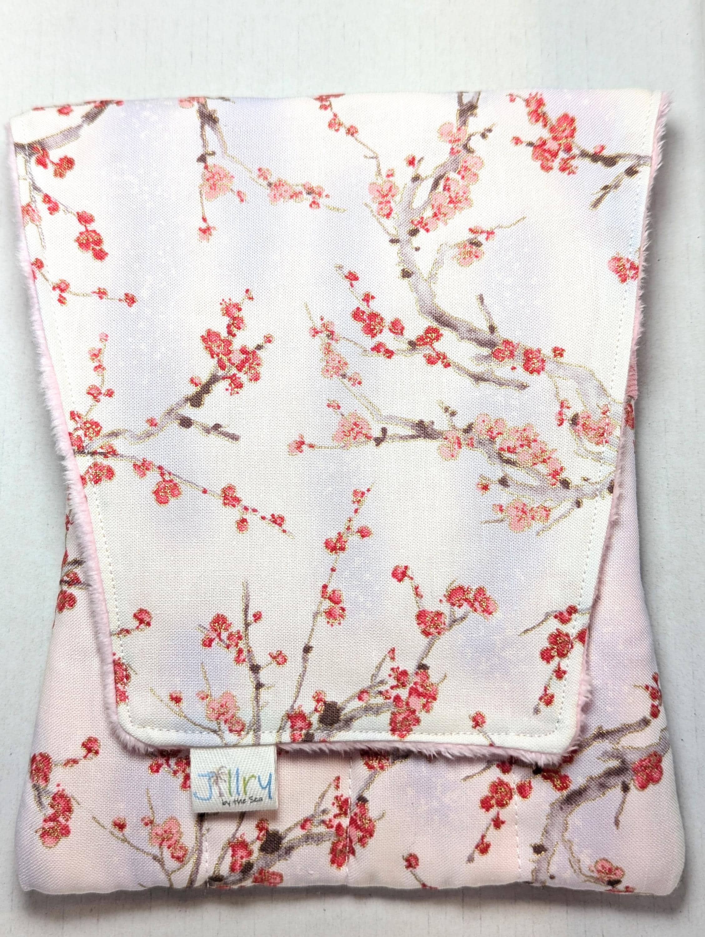 A handmade fabric fountain pen pouch that will hold all your pens and your notebook, too! Fun fabrics! Makes great gifts! This original design holds eight pens in pockets made of soft minky fabric that will protect them from bumping into each other and keep them from being scratched. The pocket is long enough to hold big pens and it even has a center pocket where you can stash a small notebook and your phone!