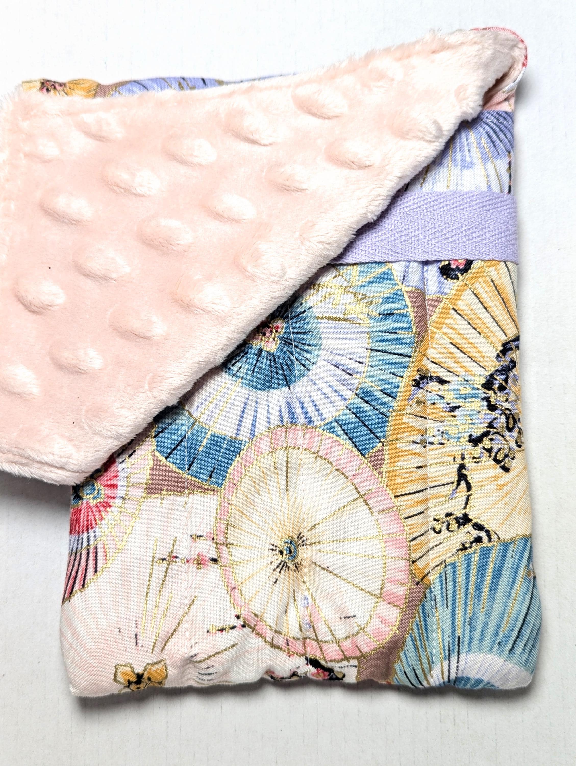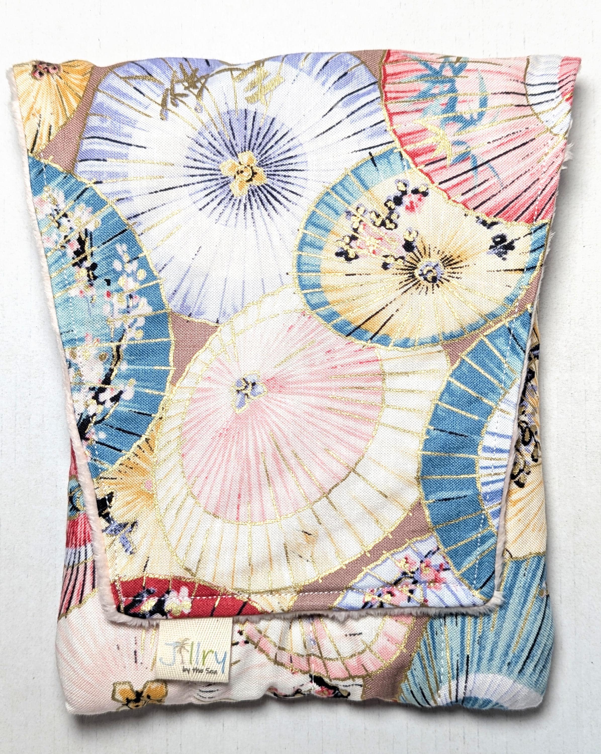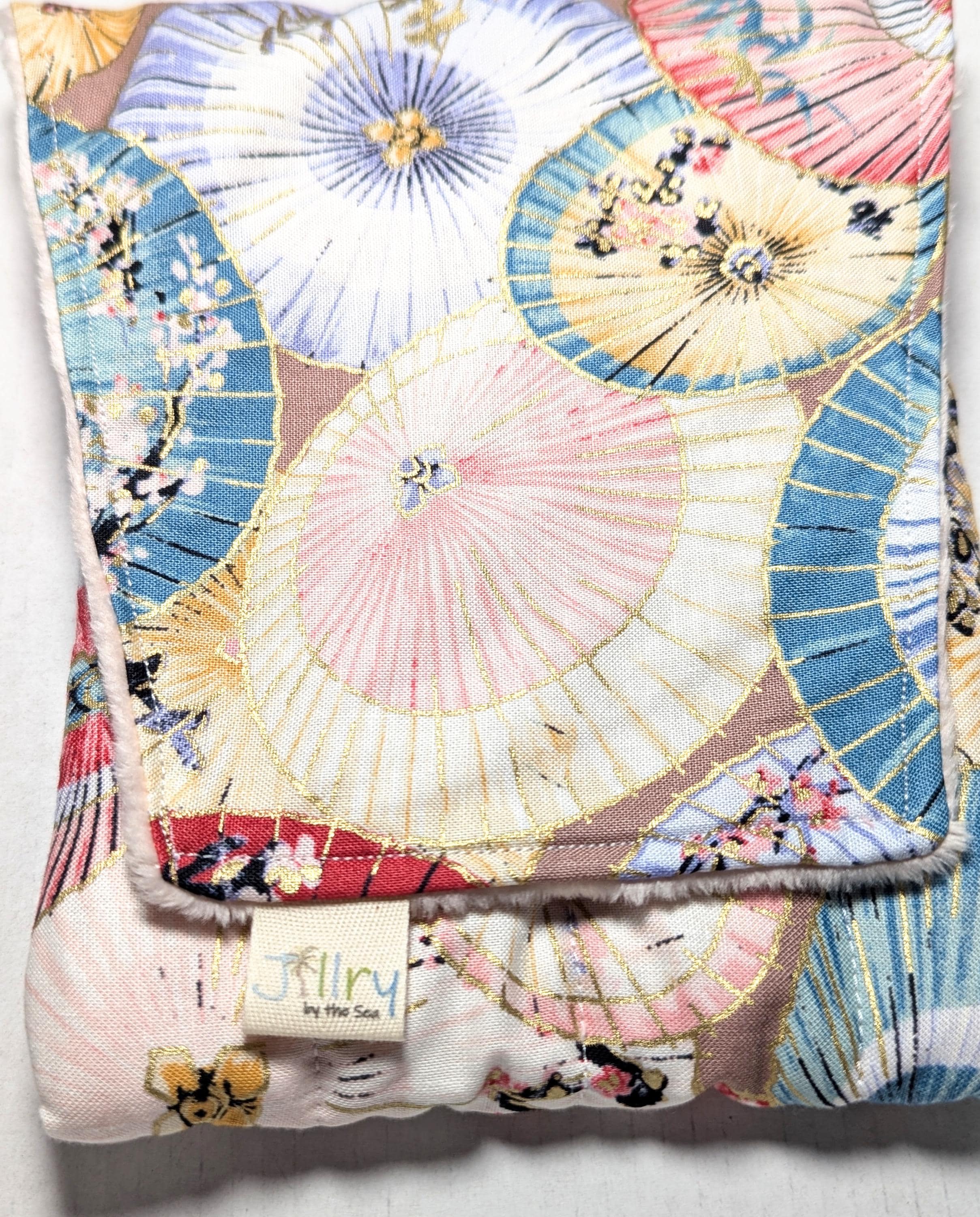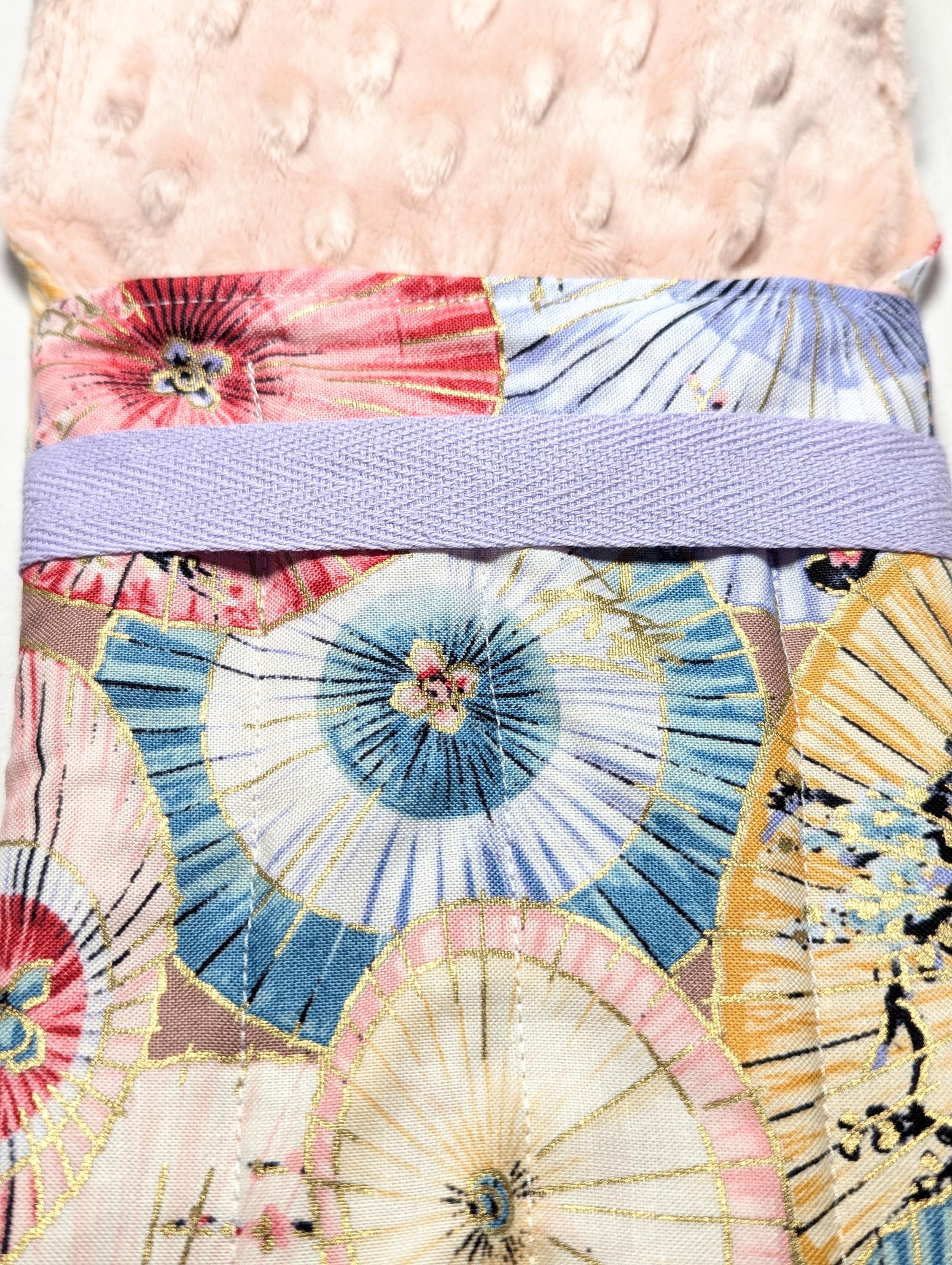 A handmade fabric fountain pen pouch that will hold all your pens and your notebook, too! Beautiful soft colors and gold Ribbon with a little sparkle! This original design holds eight pens in pockets made of soft champagne minky fabric that will protect them from bumping into each other and keep them from being scratched. The pocket is long enough to hold big pens and it even has a center pocket where you can stash a small notebook and your phone!