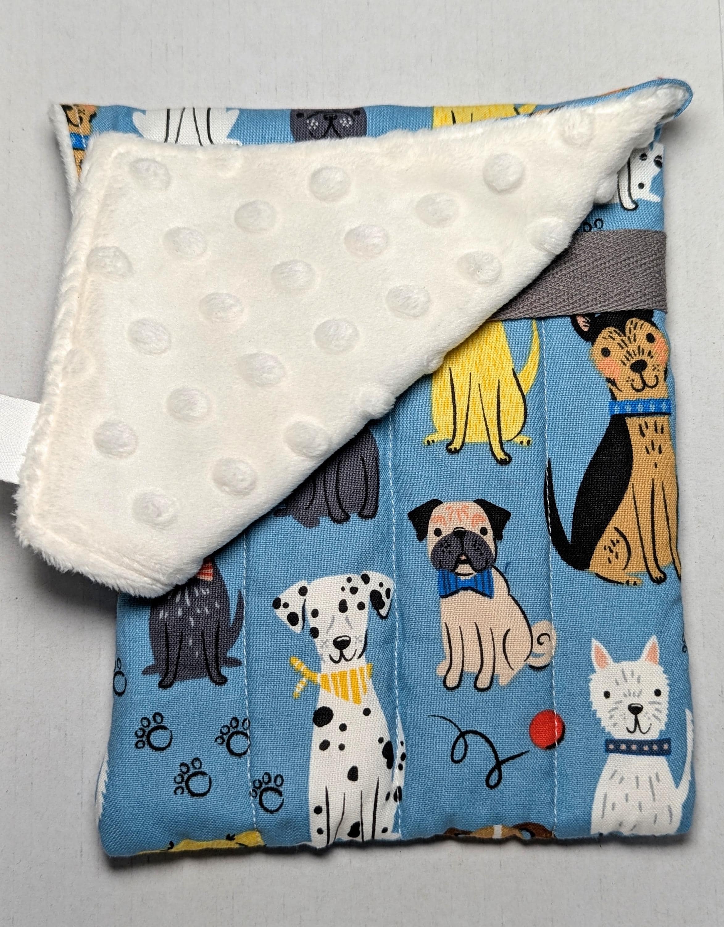 A handmade fabric fountain pen pouch that will hold all your pens and your notebook, too! Fun fabrics! Makes great gifts! This original design holds eight pens in pockets made of soft minky fabric that will protect them from bumping into each other and keep them from being scratched. The pocket is long enough to hold big pens and it even has a center pocket where you can stash a small notebook and your phone!