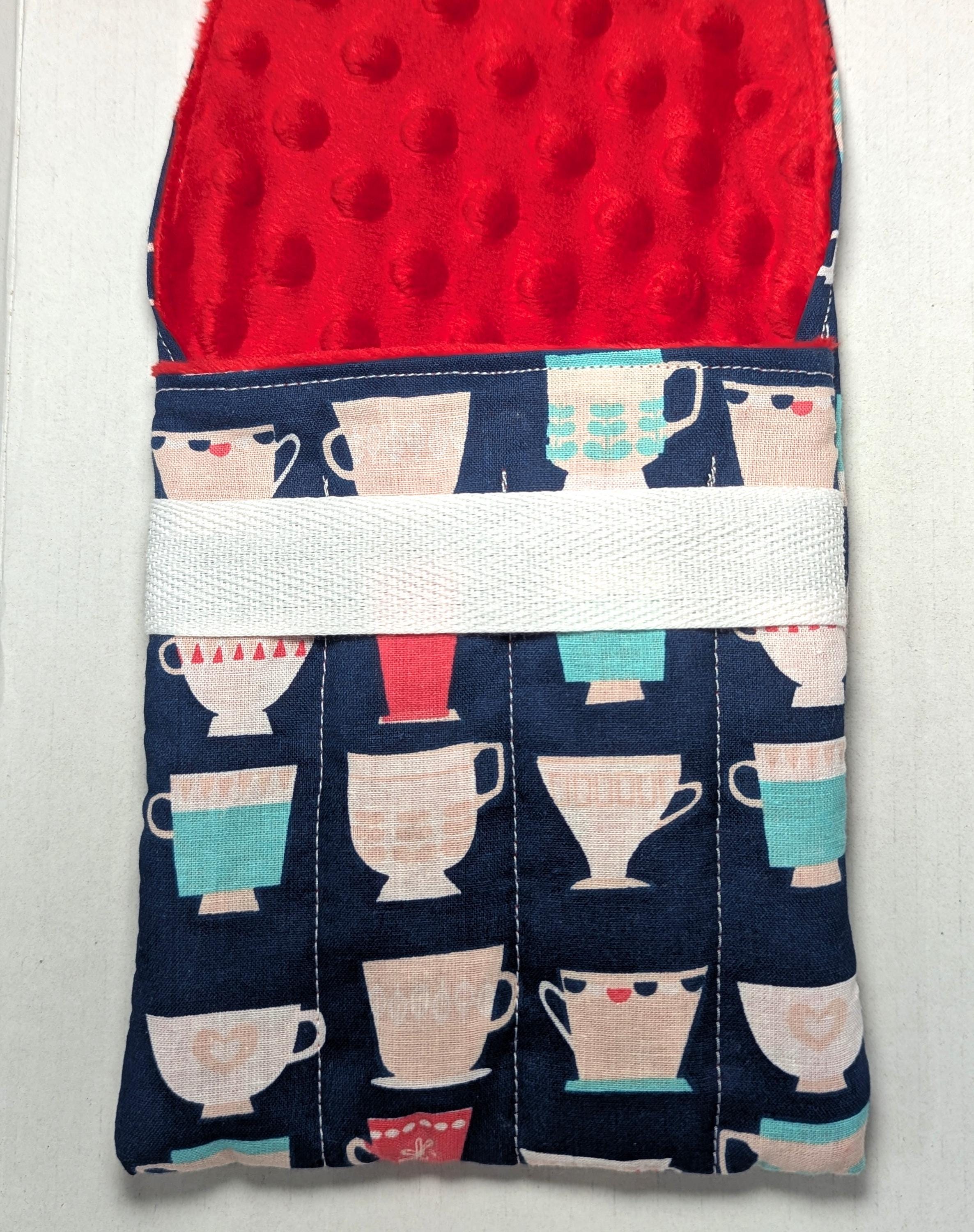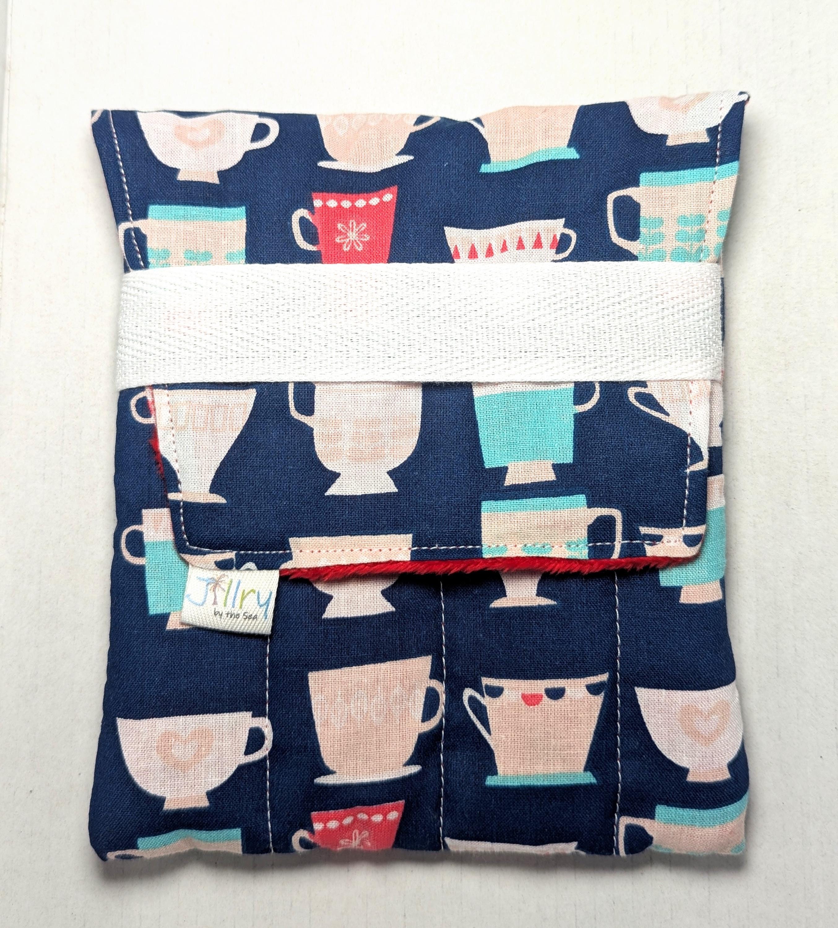 A handmade fabric fountain pen pouch that will hold all your pens and your notebook, too! Fun fabrics! Makes great gifts! This original design holds eight pens in pockets made of soft minky fabric that will protect them from bumping into each other and keep them from being scratched. The pocket is long enough to hold big pens and it even has a center pocket where you can stash a small notebook and your phone!
