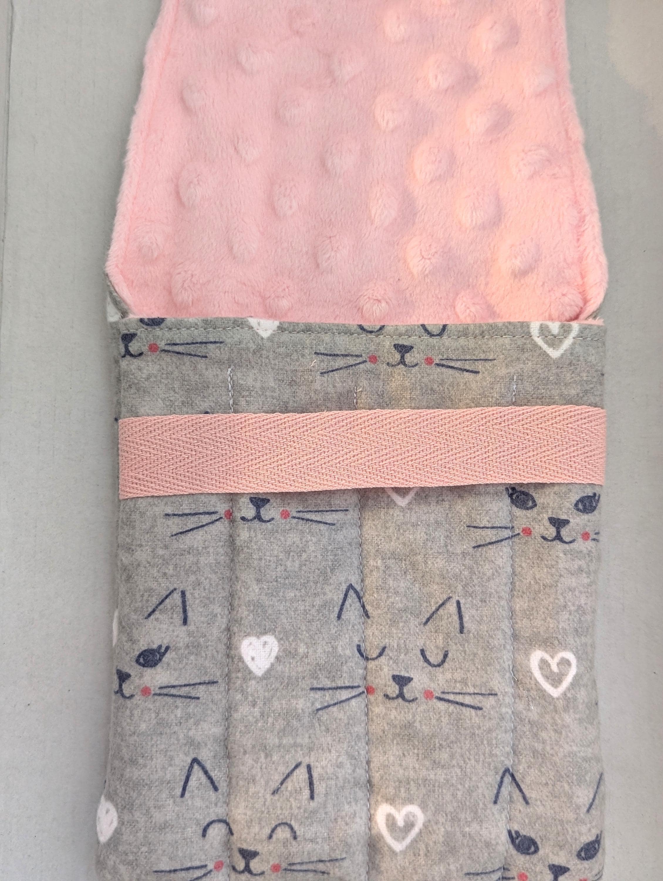 Fabric Pen Pouch: "Gatemouth" Gray Cat Faces, Minky Lined, 8 Pens