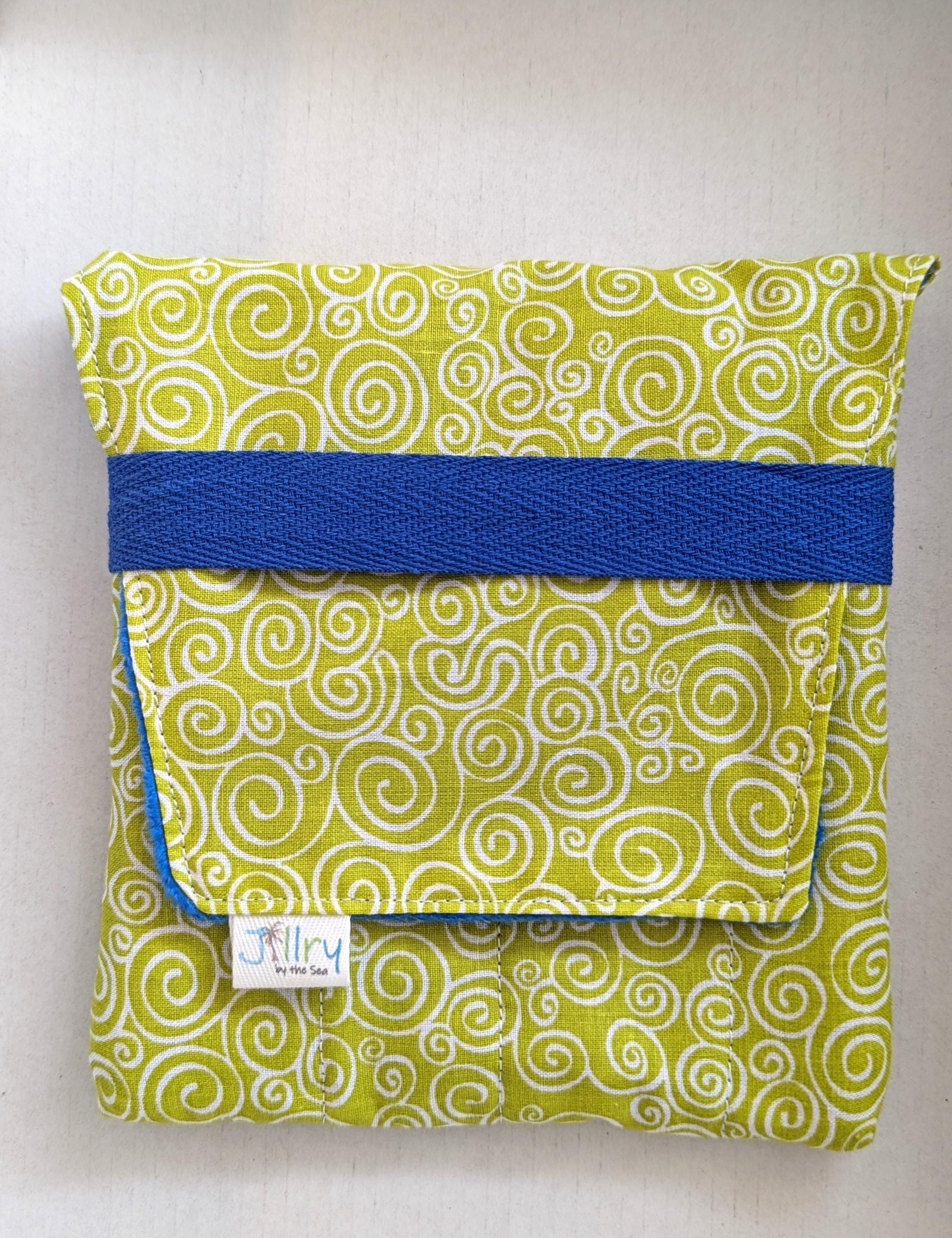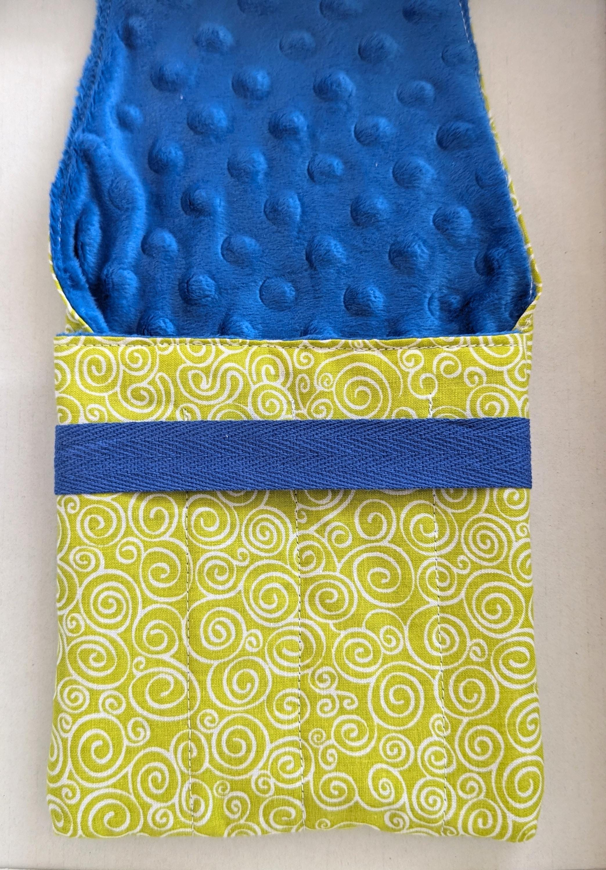 A handmade fabric fountain pen pouch that will hold all your pens and your notebook, too! Fun fabrics! Makes great gifts! This original design holds eight pens in pockets made of soft minky fabric that will protect them from bumping into each other and keep them from being scratched. The pocket even has a center pocket where you can stash a small notebook and your phone!